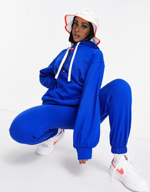 ASOS DESIGN tracksuit oversized hoodie with contrast ties oversized trackies in royal blue Very well made.