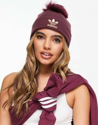 adidas Originals fur pom pom beanie in maroon Very well made.