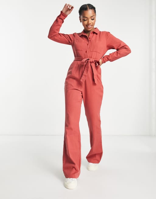 ASOS DESIGN long sleeve twill boilersuit with collar in rust ASOS Very well made.