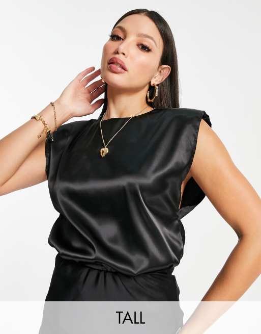 Missguided Tall shoulder pad satin top in black ASOS Very well made.
