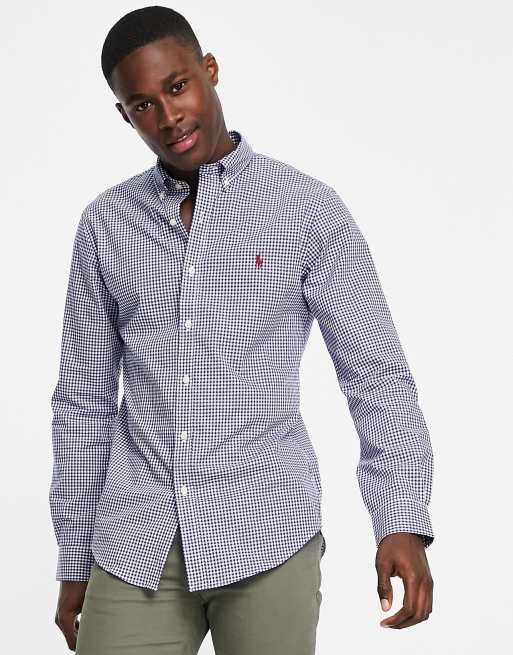 Polo Ralph Lauren player logo gingham check slim fit poplin shirt button down in navy Very well made.