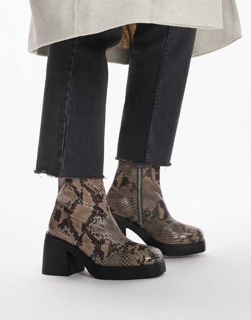 Topshop Tyra leather block heeled boot in snake Very well made.