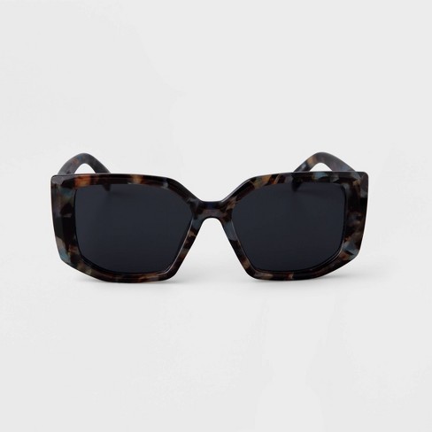 Women s Tortoise Shell Print Angular Square Sunglasses A New Day Blue Very well made.