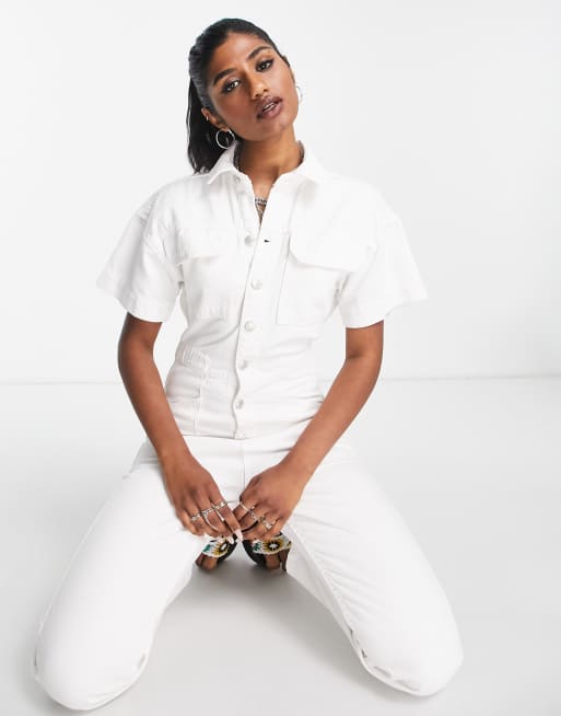 ASOS DESIGN denim jumpsuit in white with popper detail Very well made.