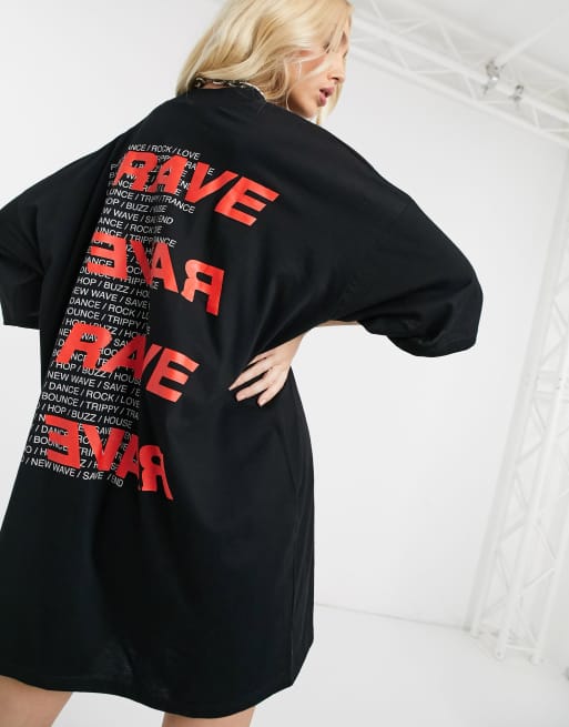 ASOS DESIGN oversized t shirt mini dress with rave back print Very well made.